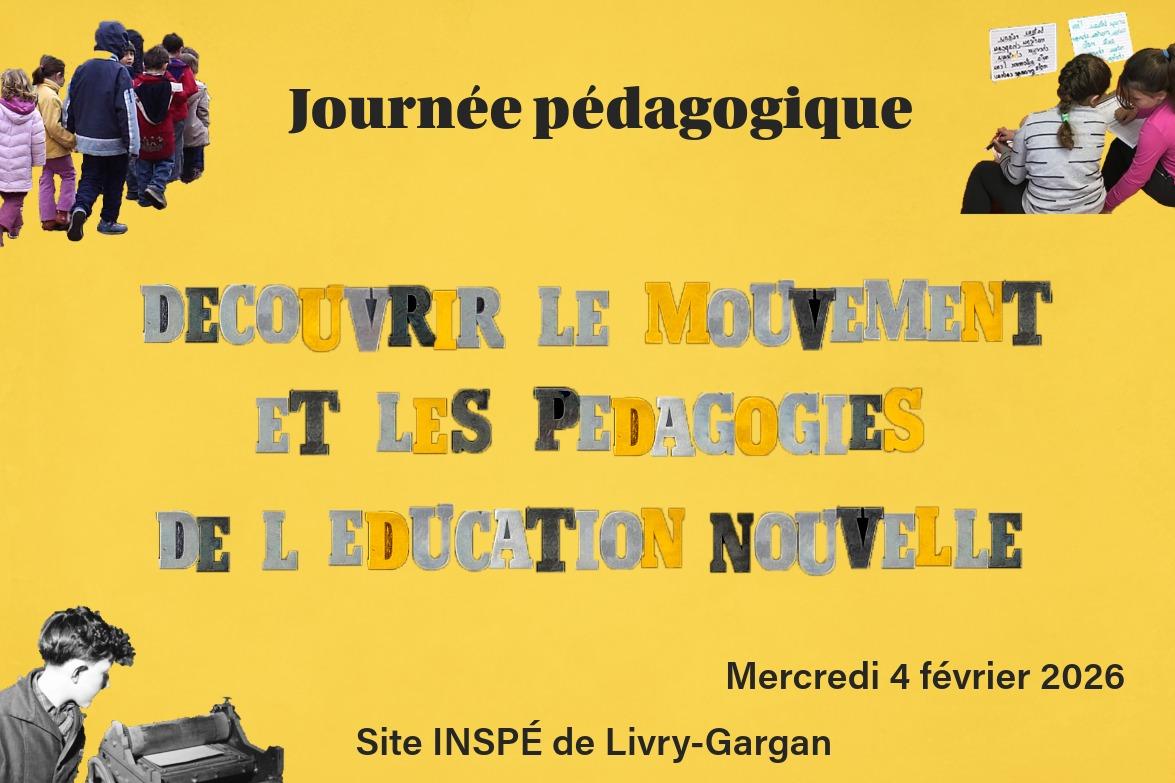 Découvrir le mouvement et les pédagogies de l’éducation nouvelle – 4 février 2026, INSPE de Livry-Gargan Les groupes de réflexion « Éducation Nouvelle » et « Éduquer à la solidarité » de l’Inspé de l’académie de Créteil – UPEC organisent une journée pédagogique le mercredi 4 février 2026. Présentation : […] 15 janvier 2026 Valérie Pinton