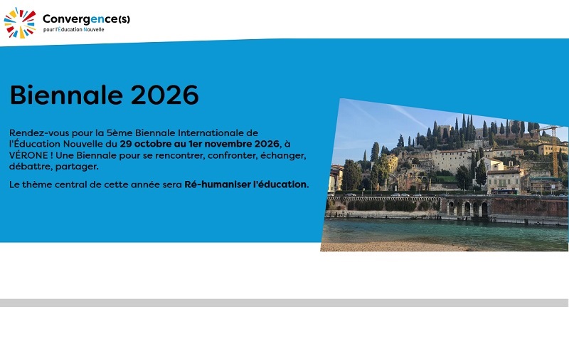 Biennale 2026 La 5ème Biennale Internationale de l’Éducation Nouvelle se tiendra du 29 octobre au 1er novembre 2026, en Italie, à Vérone ! Une Biennale pour se rencontrer, confronter, échanger, débattre, partager. […] 20 avril 2026 Valérie Pinton
